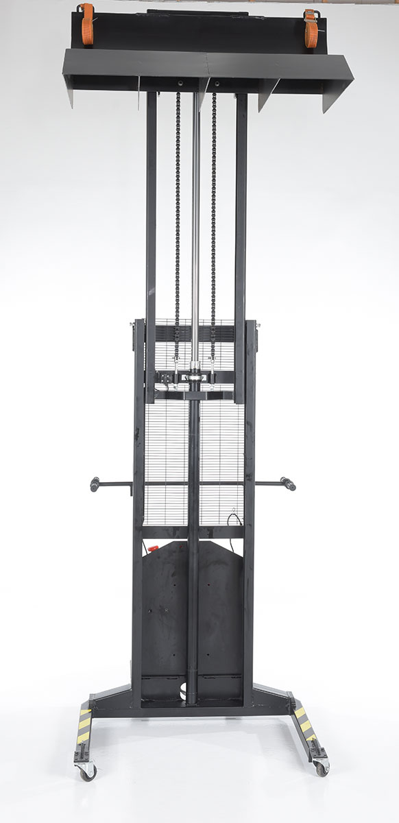 Vestil HYD-ROLL-47-DC Steel 12 Volt DC Roll Lifter Transporter 600 Lb. Capacity is DC powered and works effortlessly with a capacity of 600lbs. driving handles are in a position that allows the user to maintain a proper posture. Powder coated finish for added toughness. Four poly casters roll smoothly across a variety of surfaces.