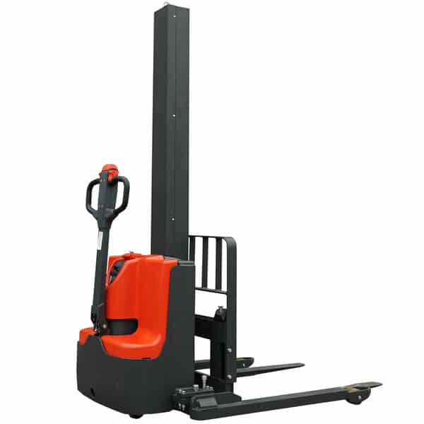 With an industrial-grade steel frame and a tough powder coating, this stacker is designed to reliably tackle even the toughest of conditions. It’s adjustable 45″ forks can fit different skid widths while its minimum height allows you to lift pallets off the ground with ease. Moreover, it boasts heavy-duty front and rear wheels for easy transportation as well as the excellent visibility thanks to its single mast design – all at speeds up to 2.5 mph on inclines from 5% (loaded) or 10% (unloaded).
