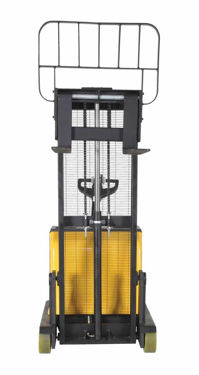 The Vestil S-2CB-62 Counter Balanced Powered Lift is ideal for die loading, machine feeding, and for loading and unloading trucks. High torque drive and lift motor handles heavy-duty jobs. Ergonomic handle features easy-to-operate throttle with infinite adjustment of forward and reverse speeds, lift/lower controls, proprietary safety-enhancing emergency reverse function, and horn. Includes an electromagnetic disc brake with automatic dead-man feature that activates when the user releases, the handle. Powered lift also includes batteries, an integral battery charger, and battery level gauge. Stacker rolls smoothly on poly-on-steel steer & load wheels. Adjustable forks suitable for different pallets. A high level of serviceability simplifies maintenance and prolongs equipment life. Easy access battery compartment simplifies battery maintenance.
