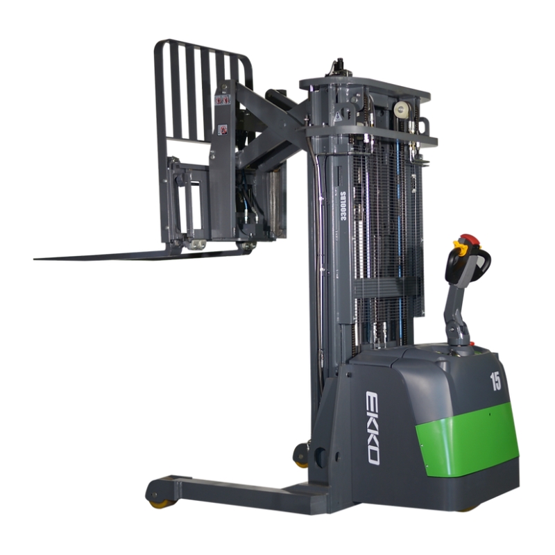The EKKO ER15-138LI Walkie Reach Truck is designed for efficient pallet handling and high-reach tasks in narrow aisle environments. Powered by a 24V/150Ah lithium-ion battery and controlled by a Curtis system, it delivers consistent performance with quick charging and minimal maintenance. With a 3,300 lb. lifting capacity, 42-inch forks, a 92.9-inch lowered mast, and a maximum lift height of 138 inches, it’s built for productivity in tight warehouse settings.