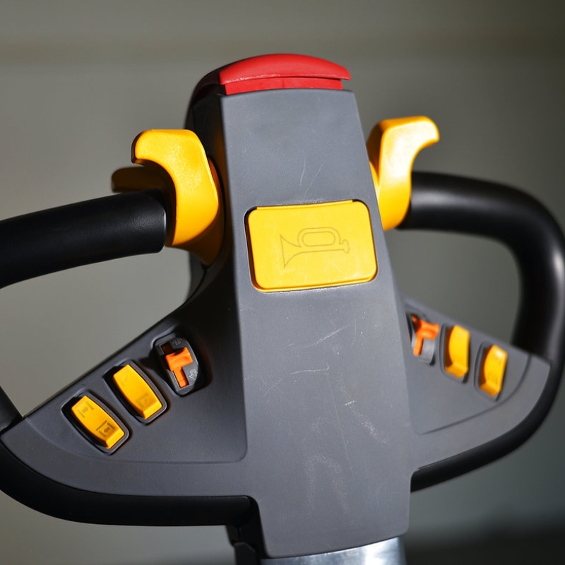 Key features include a 19.7-inch reach function, side shift, free lift, and tilt for maximum load control. A synchronous proportional valve, EPS (electronic power steering), and an AC drive motor ensure smooth and accurate maneuvering. Its 4,550 lb. frame and poly tires make it ideal for indoor use on clean, smooth surfaces.