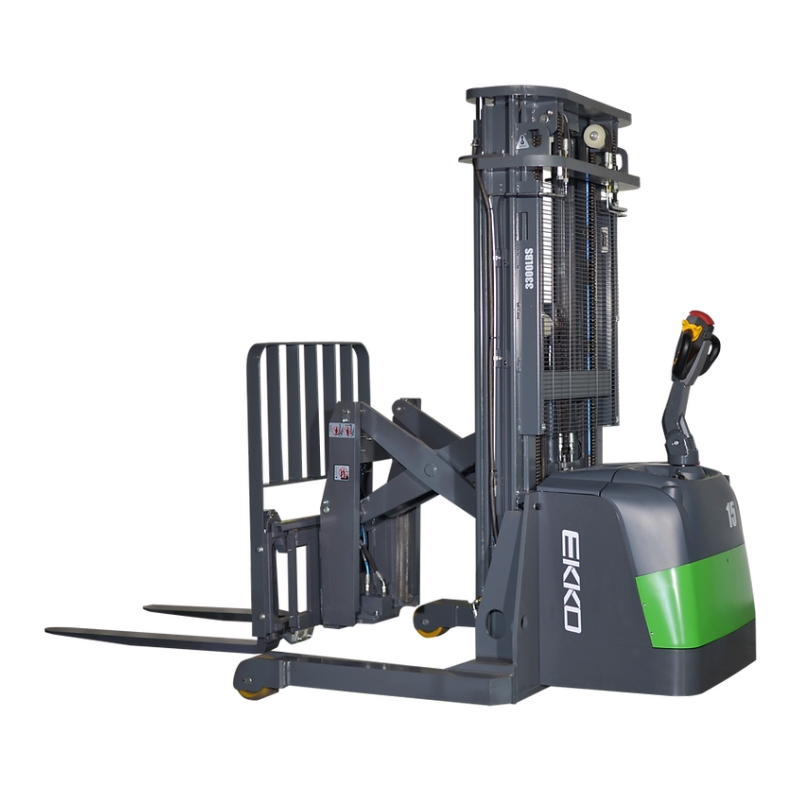 The EKKO ER15-216LI Walkie Reach Truck is designed for high-reach efficiency in tight warehouse aisles. Powered by a 24V/150Ah lithium-ion battery and a Curtis controller, it offers fast charging, low maintenance, and dependable performance. With a 3,300 lb. lifting capacity, 42-inch forks, an 89-inch lowered mast, and a maximum lift height of 216 inches, it’s ideal for maximizing vertical storage.