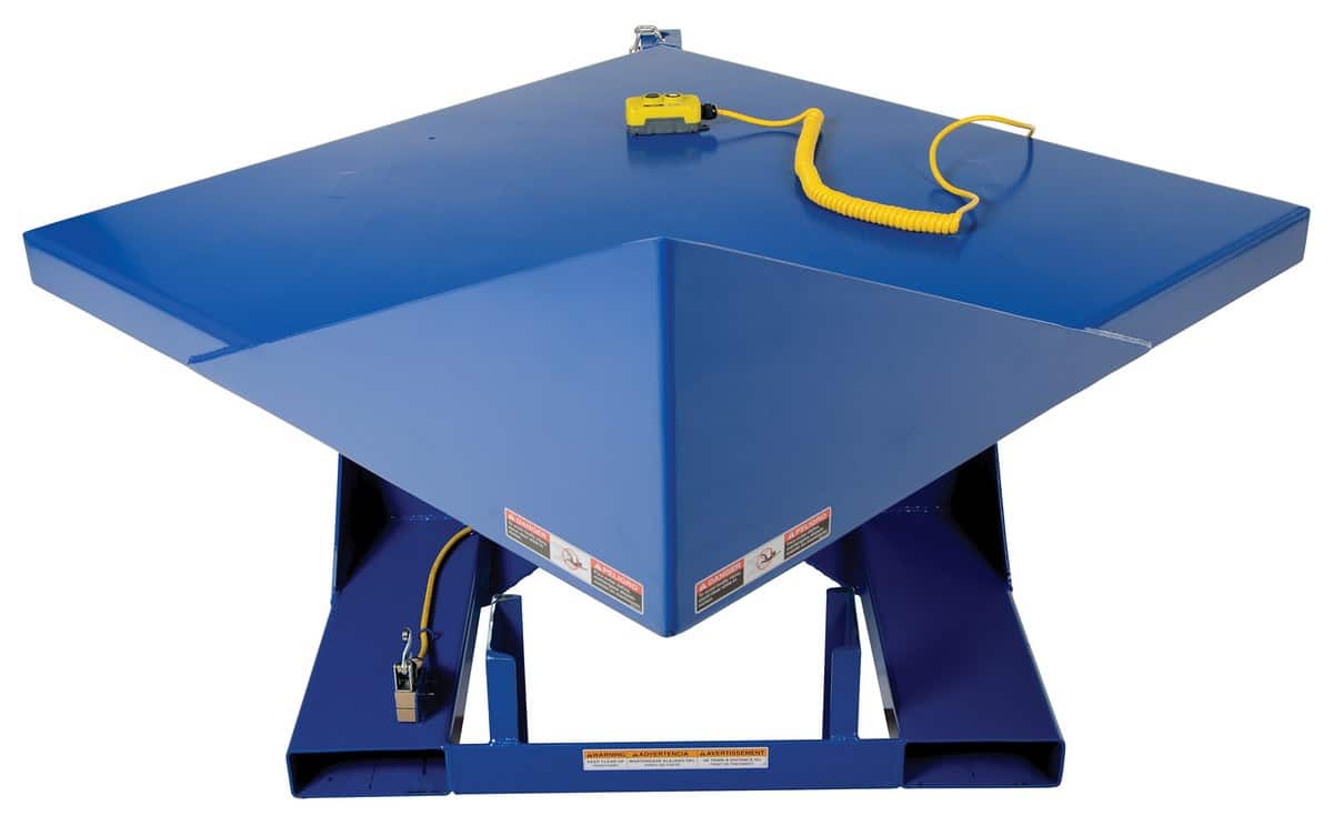 - Corner tilt design can tilt pallets, crates, boxes, and baskets