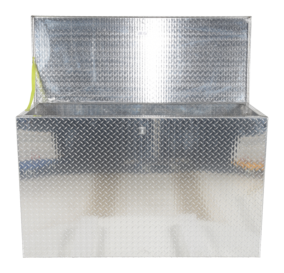 • Secure your tools and other belongings from theft with this Vestil APTS-3660 Aluminum Portable Tool Box. There is a safety double hinged hasp for padlock securing with padlock not included. Constructed of diamond tread plate material. Features two (2) sturdy handles for transporting.