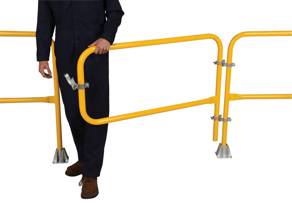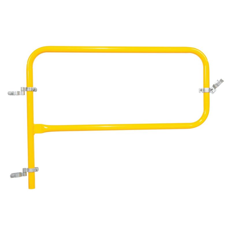 Introducing the Vestil VDKR-G4 PIPE SAFETY RAILING GATE-P SHAPED, the perfect complement to your pipe safety railing. This gate is constructed with sturdy steel, making it both durable and highly visible with its bright yellow finish. Plus, worry-free installation is a breeze with the included hardware.