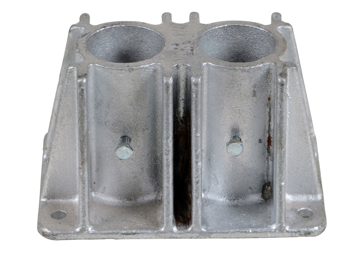 Introducing the Vestil VDKR-P102 Steel Pipe Safety Railing Double Socket! Enhance the safety of your pipe railings with this versatile accessory. Designed to accept wood when a toe board is needed, this is a must-have for a secure and reliable railing system.