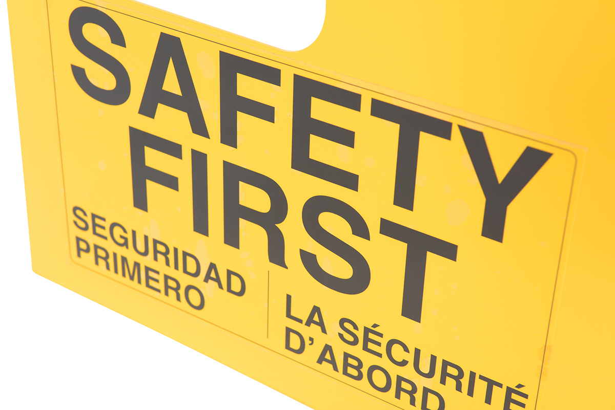 - The “Safety First” sticker is highly-visible on both sides